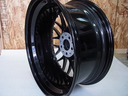 リムは研磨し、本来はシルバーですが、ブラックへ変更します
