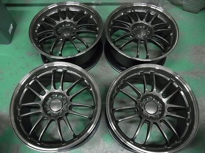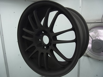 RAYS RE30 パウダーコートマットブラック色変え塗装 2014年5月28日 RAYS RE30パウダーコートマットブラックへ色変えしますパウダーコートですので、どんなに綺麗でも、仮に新品であっても元色は剥離が必要です剥離、サンドブラスト、バレル粗研磨パウダーコートマットブラック噴射焼付けし、完成