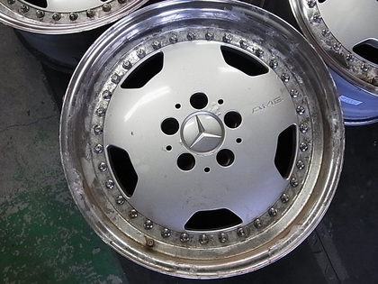 AMG3Pホイール ポリッシュリムの酷い塩カル腐食でフルオーバーホール腐食除去修理