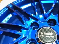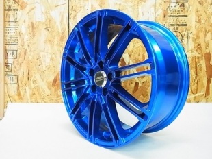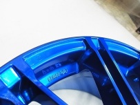 パウダーコートカラーサンプル画像【キャンディーブルーSTD】 パウダーコートキャンディーブルーSTD基本的なキャンディーブルーになります。透過性もありますが、それよりも発色が凄く良いです。キャンディーブルーはこの他に、濃いタイプの「キャンディーブルーダーク」と、薄いタイプの「キャンディーブルーライト」があります。車ホイール塗装イメージ下記ホイールは、パウダーコートミラークロームがベースに塗装されています。下記ホイールは、ブラッシュドがベースに塗装されています。