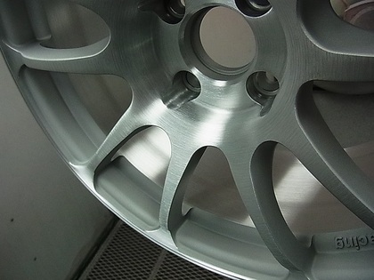 ヴェイルサイドアンドリューⅤの17インチホイールです。 古いホイールで、元々がスポーク天面がカットポリッシュ(ダイヤカット)なので、白錆や劣化が酷く、リフレッシュを兼ねてディスクをブラッシュドへカスタ
