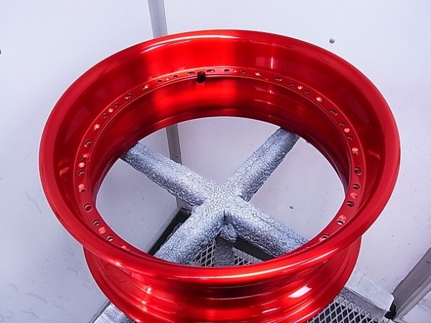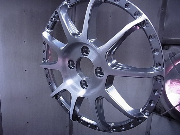 スポーク間ポリッシュ調でパウダーコート後に、表面をブラッシュド加工