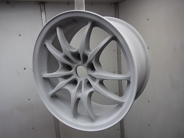 元々はRAYSによくあるアルマイトブロンズで、そのままウレタン塗装で上塗りされていますので、あちこちパラパラ剥がれています。これらの解消と、パウダーコートでのブロンズ塗装ご希望で、大阪府からのご依頼いただきました。