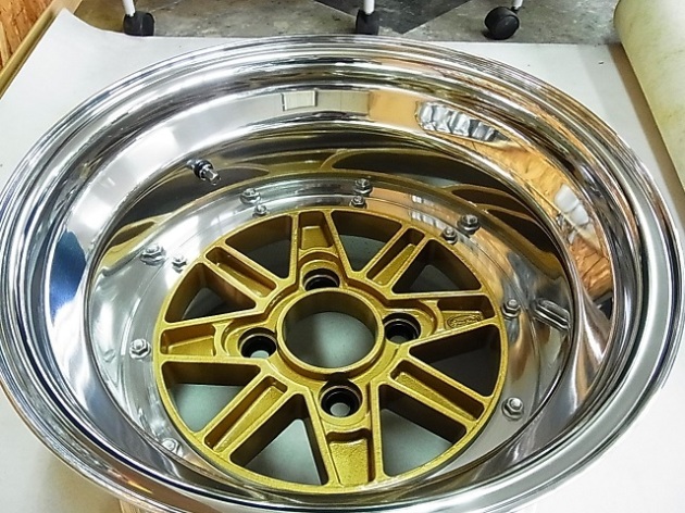 リムが深く、ディスクが分解できないので、奥の方の特にピアスボルト面はディスクが邪魔になりバフ機が入り切らないので、バレル仕上げ研磨もかけます。