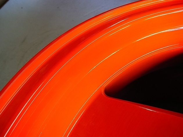 agio precisioneの20インチです。 アメ鍛特有の、アウターフェイスとインナーリムでの2P構造タイプです。 現状ブラッシュドに淡いゴールド系キャンディーとなっておりますが、クリアーに色変え