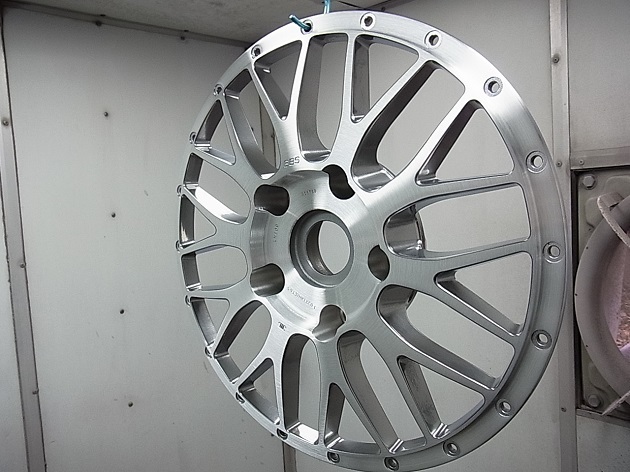 リムの塗装を剥離し、回転研磨でアウターもインナーもブラッシュド加工をします。