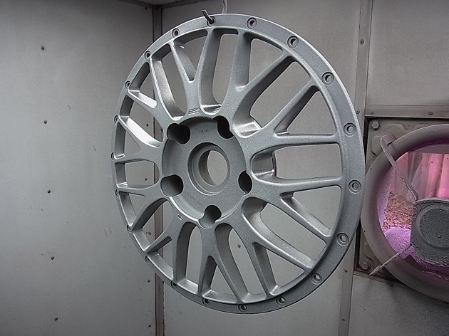 まずは元の塗装を剥離し、サンドブラスト研磨後にバレル粗研磨にかけて素地を整えます。