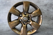 パウダーコートカラーサンプル画像【メタリックブロンズ】 パウダーコートメタリックブロンズややブラウン寄りのブラウンメタリックカラーになります。パッと見はブロンズクロームとほぼ同じに見えますが、ブロンズクロームより僅かにブラウンが強いです。メタリック粒子はそこまで目立たないタイプになります。このメタリックブロンズより明るめのブロンズがハイランドブロンズになります。以下は、このメタリックブロンズとハイランドブロンズの比較画像です。車ホイール塗装イメージ