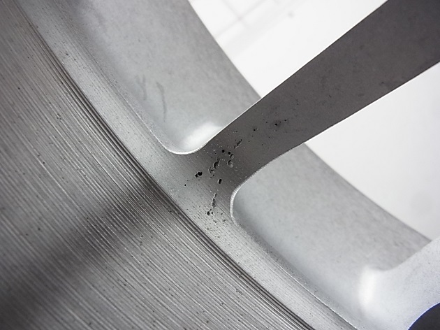 元々純正のままの状態は、スポーク隙間や裏側はシルバーがほとんど乗っていなく