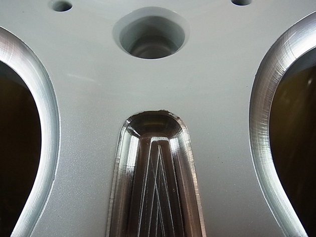 ディスク天面はダイヤモンドカット、凹面はマシニング模様です