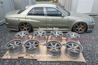 下記ホイールは、ベースはブラッシュドに、キャンディーフラットBC1を塗装しております。