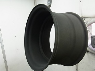 ディスクの下地研磨からパウダーコートグロスブラック塗装です