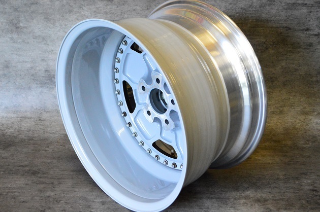 アウターリムのポリッシュ研磨からパウダーコートクリアーです