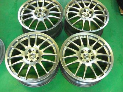 VOLK プログレッシヴME 色替え塗装 2008年12月4日 VOLKの鍛造ホイールプログレッシヴMEですリムにちょっと傷がありますが傷修正ついでの色替えというより色替えついでに傷修理ですオーナー様ご希望はTE37ふうのブロンズですしかも最近流行の半艶ですいません・・・デジカメ使いこなせてませんね~なんかオレンジっぽく写ってます・・・もちろん裏面も全て施工しますのでもともとこのカラーだったかのようにしあげます