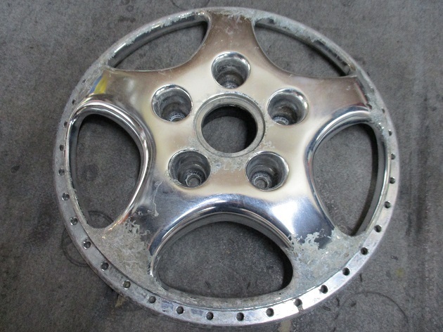 このホイールも昔から入庫率の高いホイールで、今回はディスクがポリッシュのタイプです。腐食、白錆びがかなり酷い状態ですが、これをオーバーホールで綺麗な状態へ戻します。