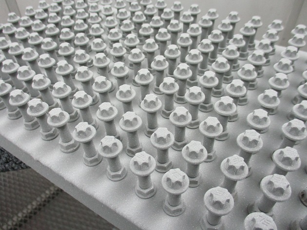 ピアスボルト160本を塗装剥離、1本1本ブラスト研磨し、パウダーコートシルバー塗装です。