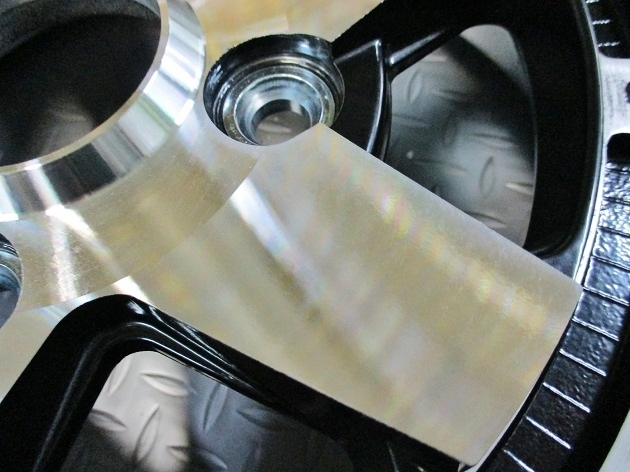 少し白っぽく靄がかかってますが、これは今現在このホイールが持っている材質その物の模様で、木で言う年輪のような物のため、素地そのままの表現がダイヤモンドカットですので隠しようがありません。