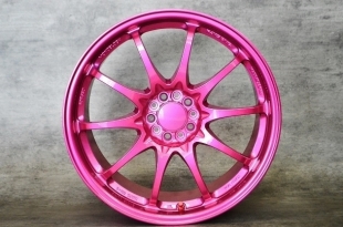 パウダーコートカラーサンプル画像【イリュージョンピンク】 パウダーコートイリュージョンピンク透き通った鮮やかな発色のピンクです。このイリュージョンシリーズは、塗装方法はキャンディーとは違いますが、仕上がりはキャンディーの風合いになるのが特徴のカラーです。特にこのイリュージョンピンクはキャンディーその物に仕上がります。ホイール塗装イメージ