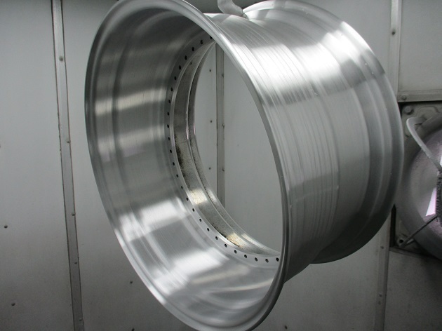 既存のリムは塗装の剥離、下地研磨後にグレー塗装をし、アウターリムを鏡面ポリッシュ研磨、最後にクリアーを丸塗りにします。