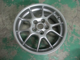 BBS RKです。特に目立った傷み、破損はありませんが、経年でも塗装劣化、艶引け等があるため、心機一転パウダーコートでのハイパーシルバーダークへの色変えリフレッシュ塗装での入庫です。
