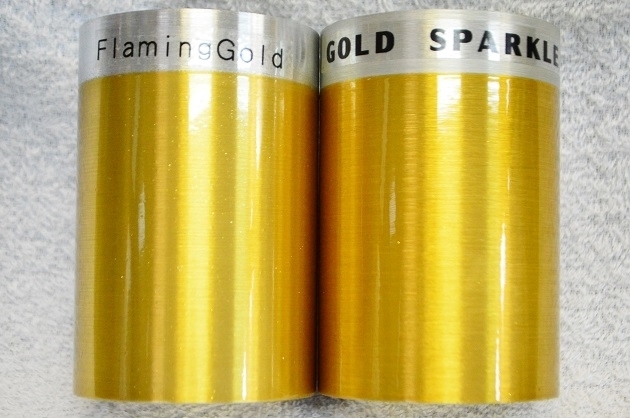 パウダーコートカラーサンプル画像【キャンディーフレイミングゴールド】 パウダーコートキャンディーフレイミングゴールド薄目で綺麗なキャンデイーゴールドで、僅かにメタリックのキラキラが入っているカラーです。同系色としてキャンデイーゴールドスパークルがあります。かなり酷似カラーで、如いていえばフレイミングゴールドがやや薄目、ゴールドスパークルがやや濃い目という感じですが、ほぼ差は感じ無いレベルです。