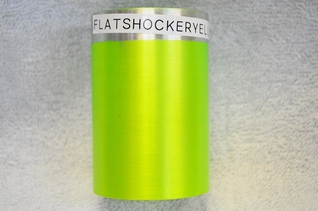 パウダーコートカラーサンプル画像【キャンディーフラットショッカーイエロー】 パウダーコートキャンディーフラットショッカーイエローカラー名の通り、キャンディーの人気カラーの一つでもあるキャンディーショッカーイエローの艶消し版です。艶消と言っても、全艶消程完全に艶が無い感じではなく、全艶消よりやや艶が有る程度、半艶よりは艶は無い程度の艶感です。フラットショッカーイエローと通常のショッカーイエローとの比較です