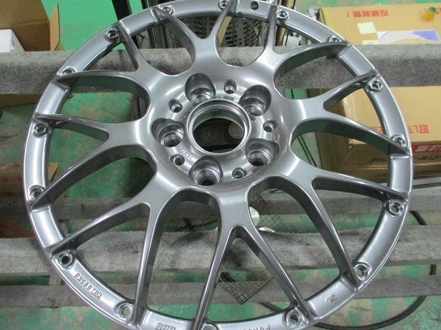 アウターリムのオリジナルは旋盤切削ポリッシュのダイヤモンドカットですが、ダイヤモンドカット面に対してのクリアーはウレタン塗装のクリアーになるため、今回の趣旨でもある『耐久性重視』にはそぐいません。よって、パウダーコートクリアーが使える手磨きでのポリッシュ(BBFポリッシュ)にしました。機械任せと違い手磨きですので、ダイヤモンドカット似にしたり、鏡面にしたりと光沢の加減は調整可能です。