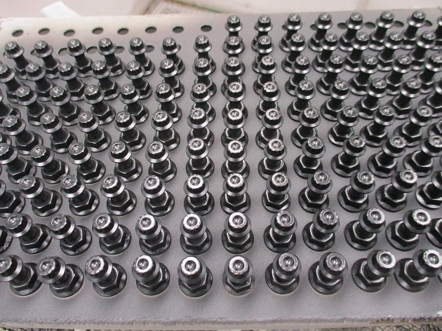 ホイールと同じくパウダーコートでも良いのですが、パウダーコートは塗膜がぶ厚いため、今回のピアスボルトのようにギザギザ12ポイントのタイプはギザギザは埋まりかけてしまいますので、塗膜が薄くても丈夫がガンコートを使います。