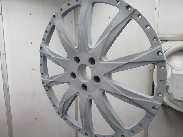 インナーリムはクロームメッキではありませんでしたので、特に問題は無く、いつもと同様に回転研磨にて下地を整えてからシルバーをパウダーコートします。