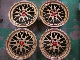 パウダーコートのゴールドは何種類かあり、その中からBBS純正ゴールドに近そうなゴールドを選びますが、BBSのゴールドは年式による物なのか、その時のロットによる物なのか、見る度に違って見えるので、ある意味現状のゴールドと全く同じではなくとも違和感は無いのかと思います。