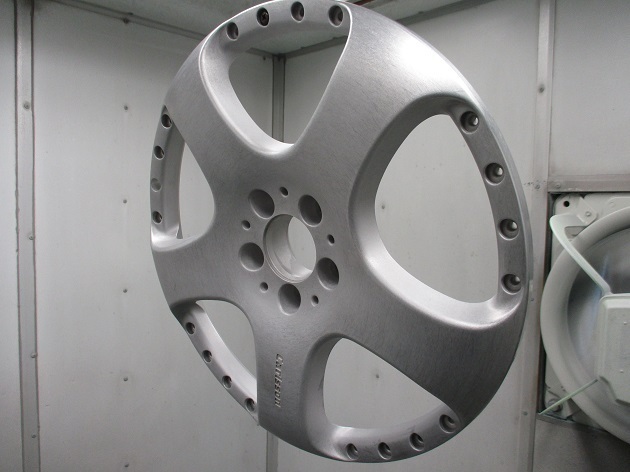 元々の塗装を剥離し、インナー側を回転研磨で塗装の下処理をし、まずはシルバーをパウダーコートします。