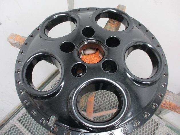回転研磨で塗装前の下地を作り、パウダーコートパールブラック塗装です。