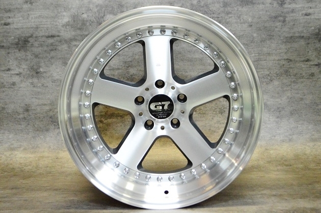 古いホイールで、ポリッシュ+クリアー仕上げのため、白サビも出ています。