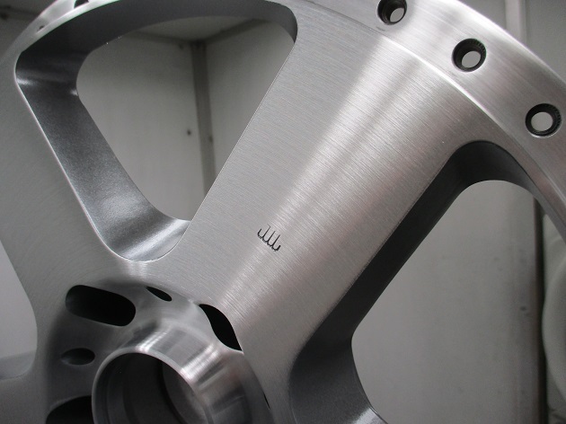 元々は旋盤切削ポリッシュのダイヤモンドカットで、もちろん同じくダイヤモンドカットも可能です。ただ、ダイヤモンドカット加工後のクリアーは、パウダーコートクリアーが使えなく、溶剤ウレタン塗装のクリアーになるため、耐久性は強くはありません。
