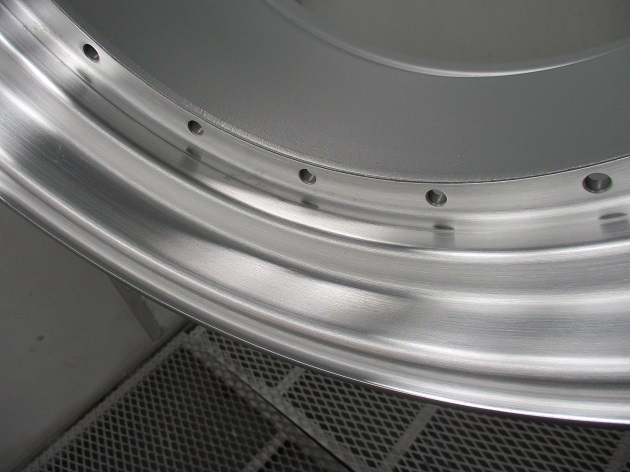 アウターリムは元々製造時は旋盤での切削ポリッシュのダイヤモンドカットです。同じくダイヤモンドカット仕上げも出来ますが、ダイヤモンドカット面に対してのクリアーは、溶剤ウレタン塗装のクリアーになるため、耐久性が良いとは言えません。回転研磨によるダイヤモンドカットに似せた仕上げでもよろしければ、クリアーは丈夫なパウダーコートが使えます。