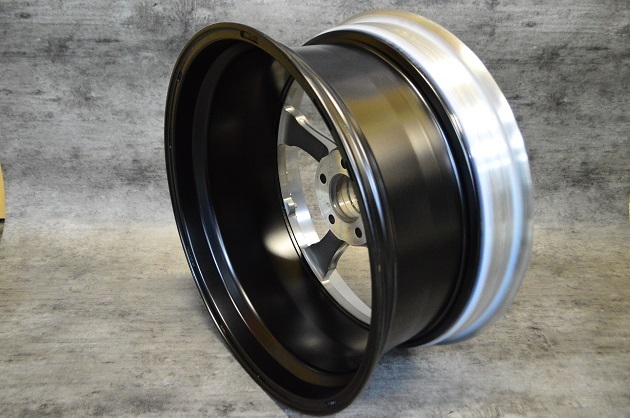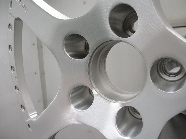 ディスクのブラッシュドは、ウインドウ(スポーク間)もブラッシュドにする3Dブラッシュド、ウインドウはブラッシュド以外にする2Dとがあり、お客様のイメージやご予算と相談しながら決めていきます。