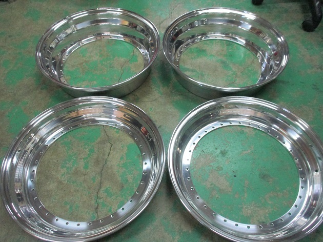 アウターリムはバフ磨きの状態で届きますが、バフ目や擦れ跡等があるため、自社にてバレル仕上げ研磨にかけ、バフ目や擦れ跡のない綺麗な鏡面にします。