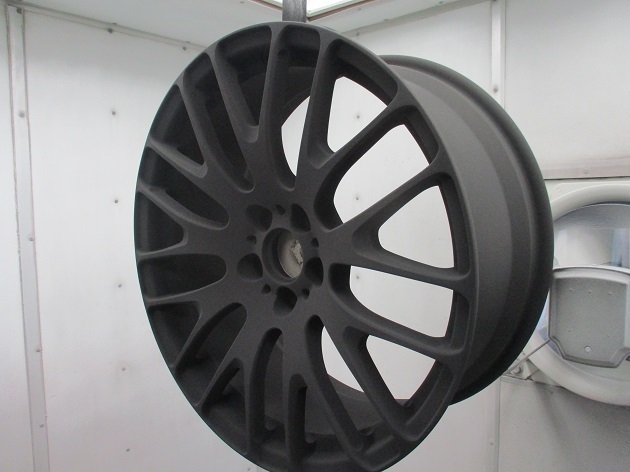 今回はハイパーブラックですのでブラックをパウダーコートし、通常通りに焼き付けて一旦硬化させます。