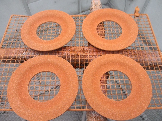 元の塗装を剥離し、ブラスト研磨後にバレル粗研磨にかけ塗装の下地を作ります。