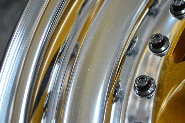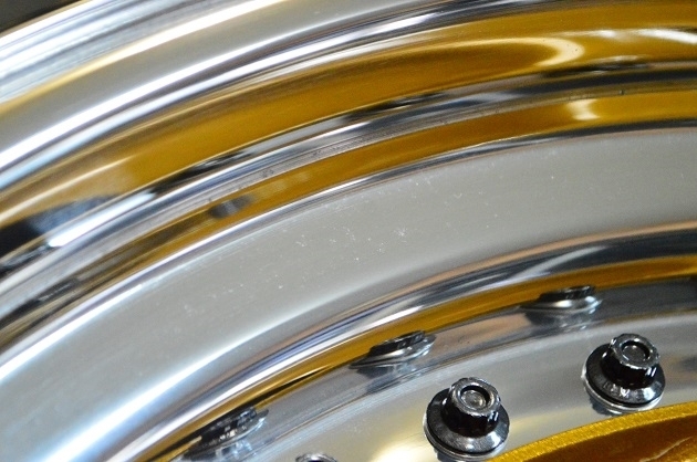 古いホイールですので、全体的に傷みや艶引けがありますので、心機一転フルオーバーホールと同時に、ディスクをカスタム塗装にて色変えもご希望で、千葉県よりご依頼いただきました。