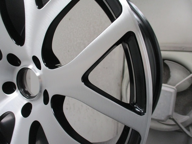 現状はRAYS純正のままの、ウインドウ(スポーク間)がブラック、表面天面は旋盤ポリッシュ(ダイヤモンドカット)にキャンディーブラッククリアーになっており、これをブラッシュド+キャンディーゴールドへカスタムご希望で、北海道よりご依頼いただきました。