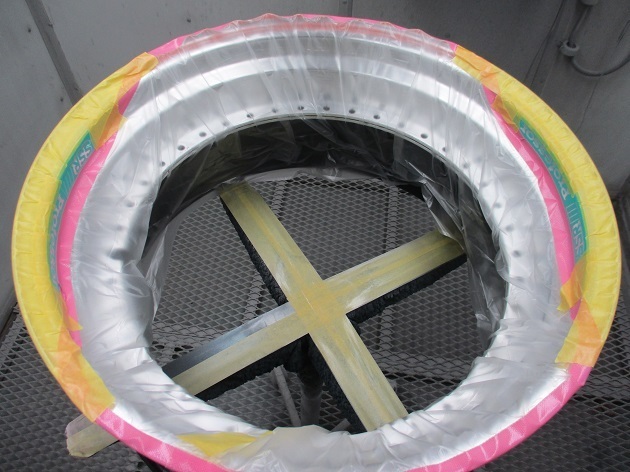最後にパウダーコートクリアーを丸塗り、焼付けてリム完成です。