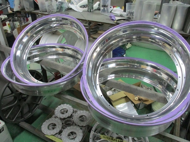 アウターリムはハブ磨きの状態で入荷しますが、バフ目や擦れ跡等は多少あるので、自社にてバレル仕上げ研磨をかけて綺麗な鏡面ポリッシュにします。