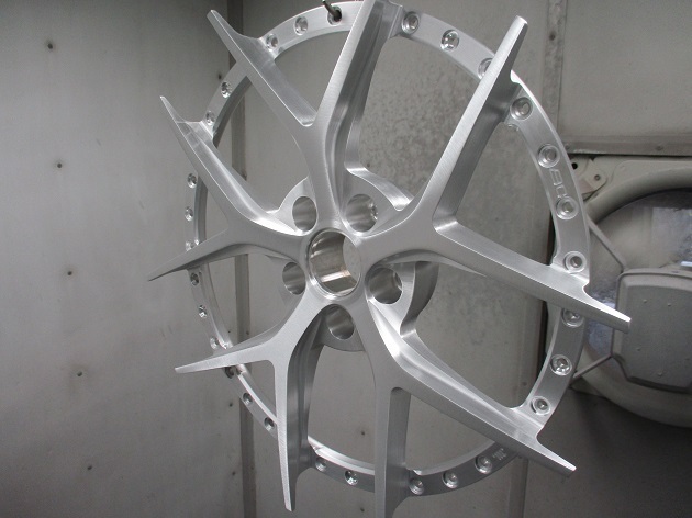 リムはアウターもインナーもグロスブラックからポリッシュにしますので、現状のグロスブラックを剥離し、インナーはブラッシュド加工、アウターはポリッシュにします。
