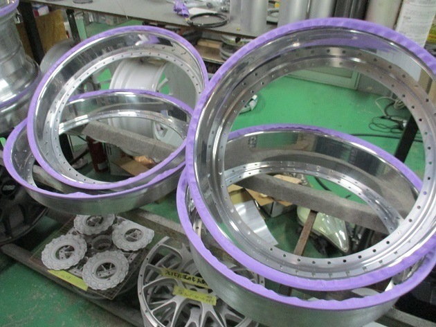アウターリムはポリッシュの状態で入荷しますが、多少の擦れ跡やバフ目はありますので、自社にてバレル仕上げ研磨にかけ、綺麗な鏡面ポリッシュにします。