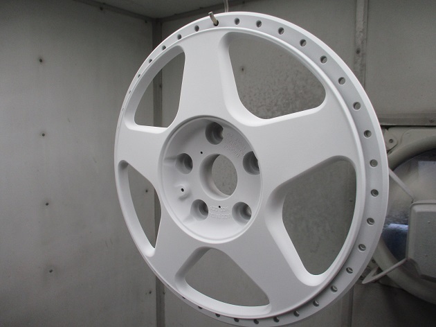 インナーリムはグロスブラックにするので、脱脂洗浄後にグロスブラックをパウダーコートです。