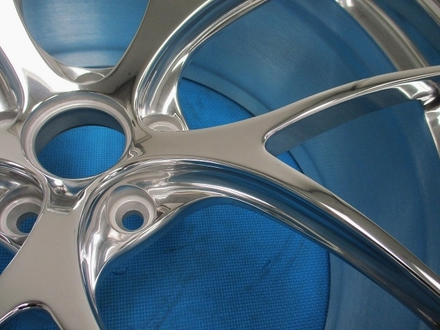 BBS RI-Dは、スポークサイドが湾曲していて複雑な形状ですが、下地研磨さえしっかり施されていれば、各工程1発でここまで光ります。