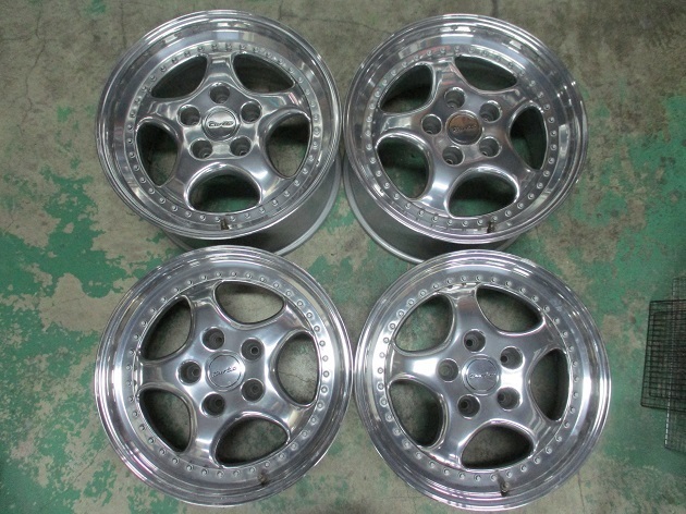 今回は、数年前に当社でバレル研磨にてディスクをポリッシュへカスタムリメイクさせていただいた物の再入庫で、ディスクをシルバー塗装へ戻すのと同時に、リアをリム交換で太さはそのままオフセットを変更したい、と言うご希望で、愛知県よりご依頼いただきました。
