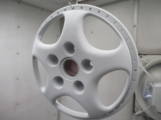 ディスクは、クリアー塗装を剥離し、バレル粗研磨で下地を整えてから、シルバーをパウダーコートです。