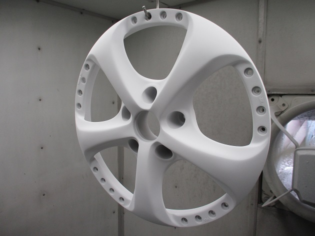 ディスクもアウターリム同様にクリアー塗装ご希望なので、クリアーをパウダーコートします。
